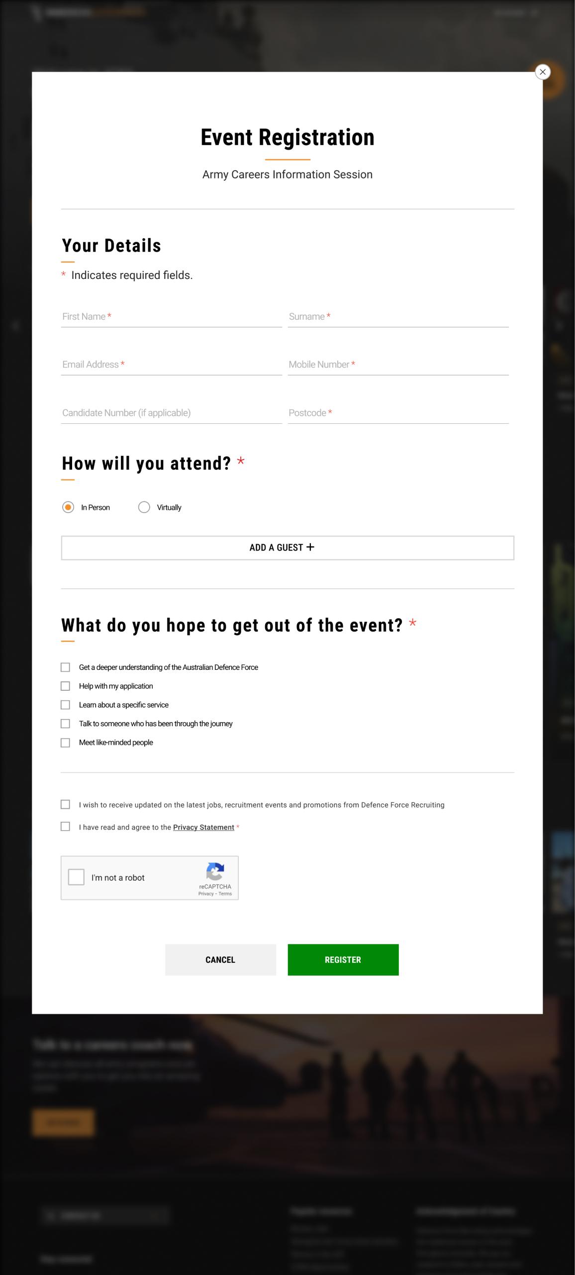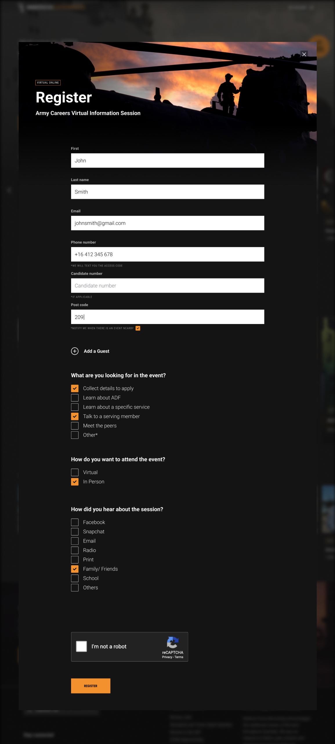 Event check-in registration form